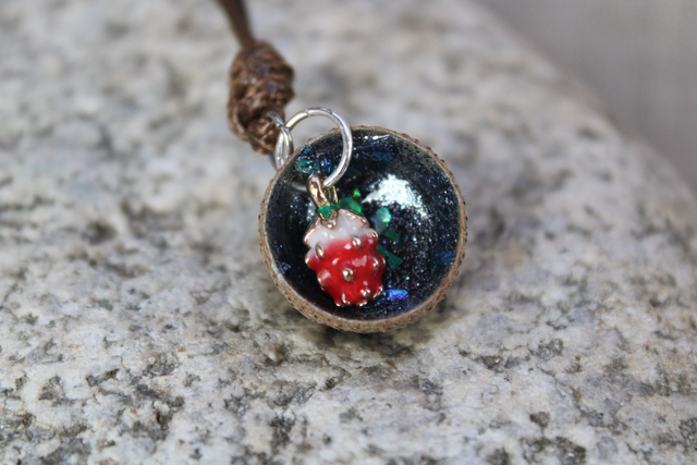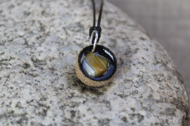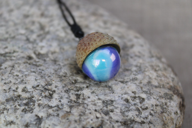 Beschrijvingstekst voor het product: In elk eikeldopje schuilt een verhaal. Een glinstering van herfstlicht, een stuifmeelbolletje van speelsheid, een bedel vol betekenis. Deze bosjuweeltjes zijn geen gewone sieraden—het zijn kleine kunstwerkjes, met de hand gemaakt, één voor één, uit de overvloed van het seizoen.