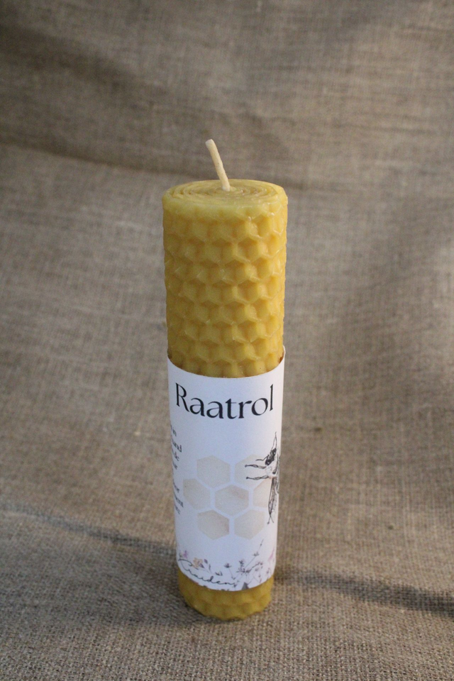 Een klassieke kaars, gerold uit een vel wasraat—zoals bijen het gebruiken om hun cellen op te bouwen. Stevig en gelijkmatig gerold, met een zachte geur van bijenwas die de ruimte vult met warmte. Deze kaars is eenvoudig, puur en vol karakter. Ideaal als geschenk voor een vriend, geliefde of jezelf. Een lichtje dat herinnert aan samenwerking, zachtheid en ambacht.